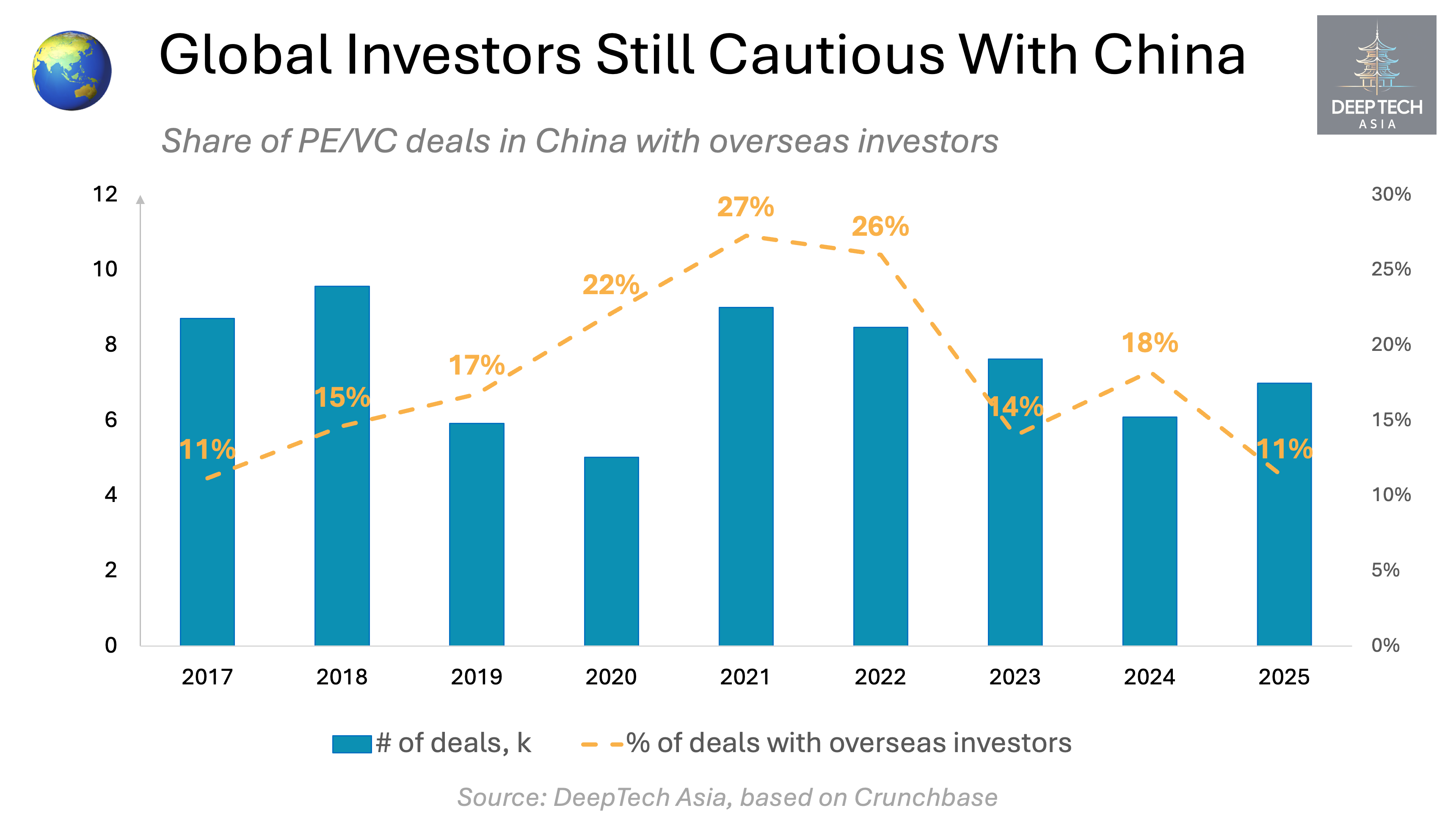 Importantly, the 11% figure for 2025 also includes overseas funds managed by Chinese GPs — such as GGV and GSR — which only partially qualify as cross-border investors.