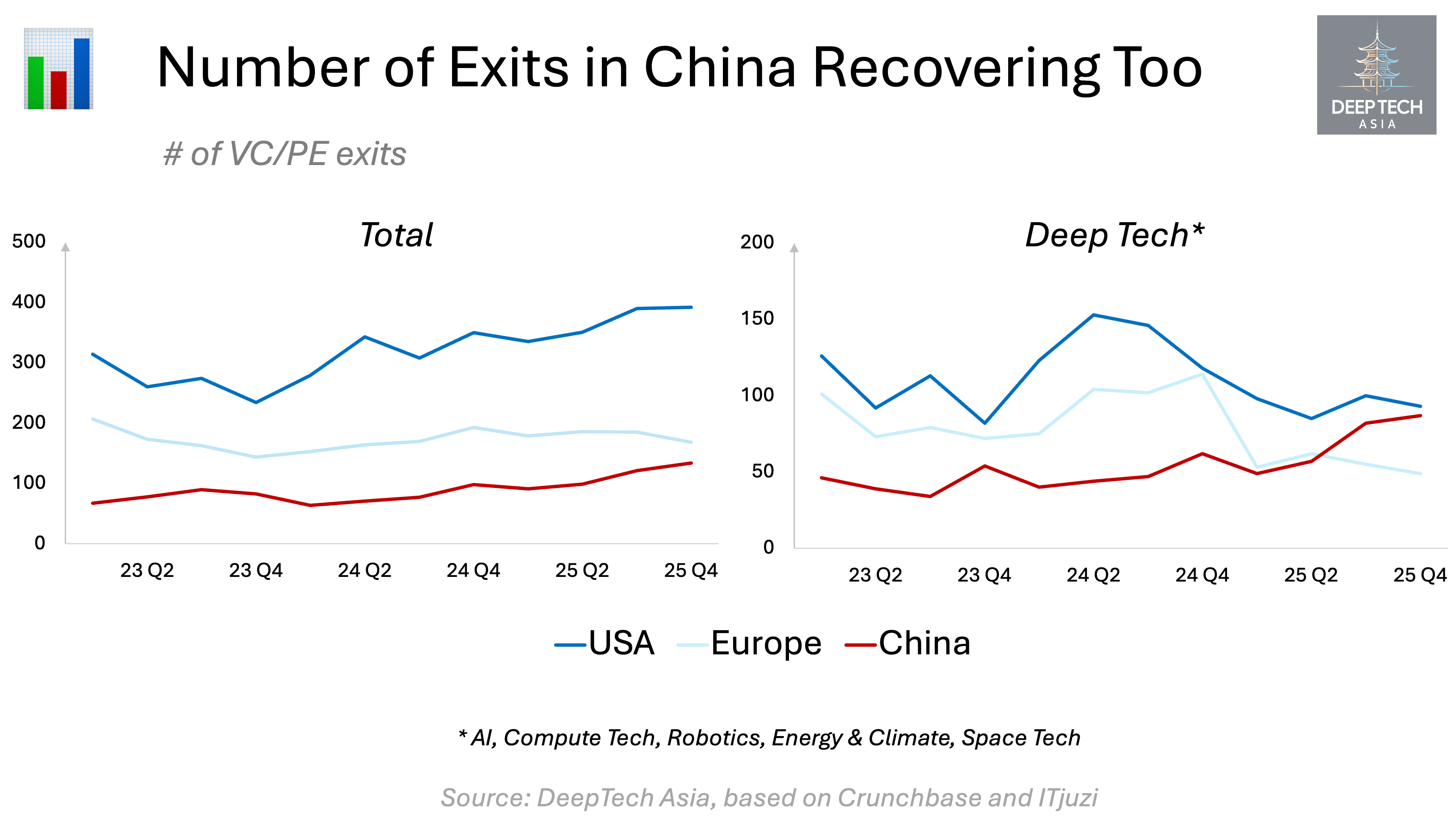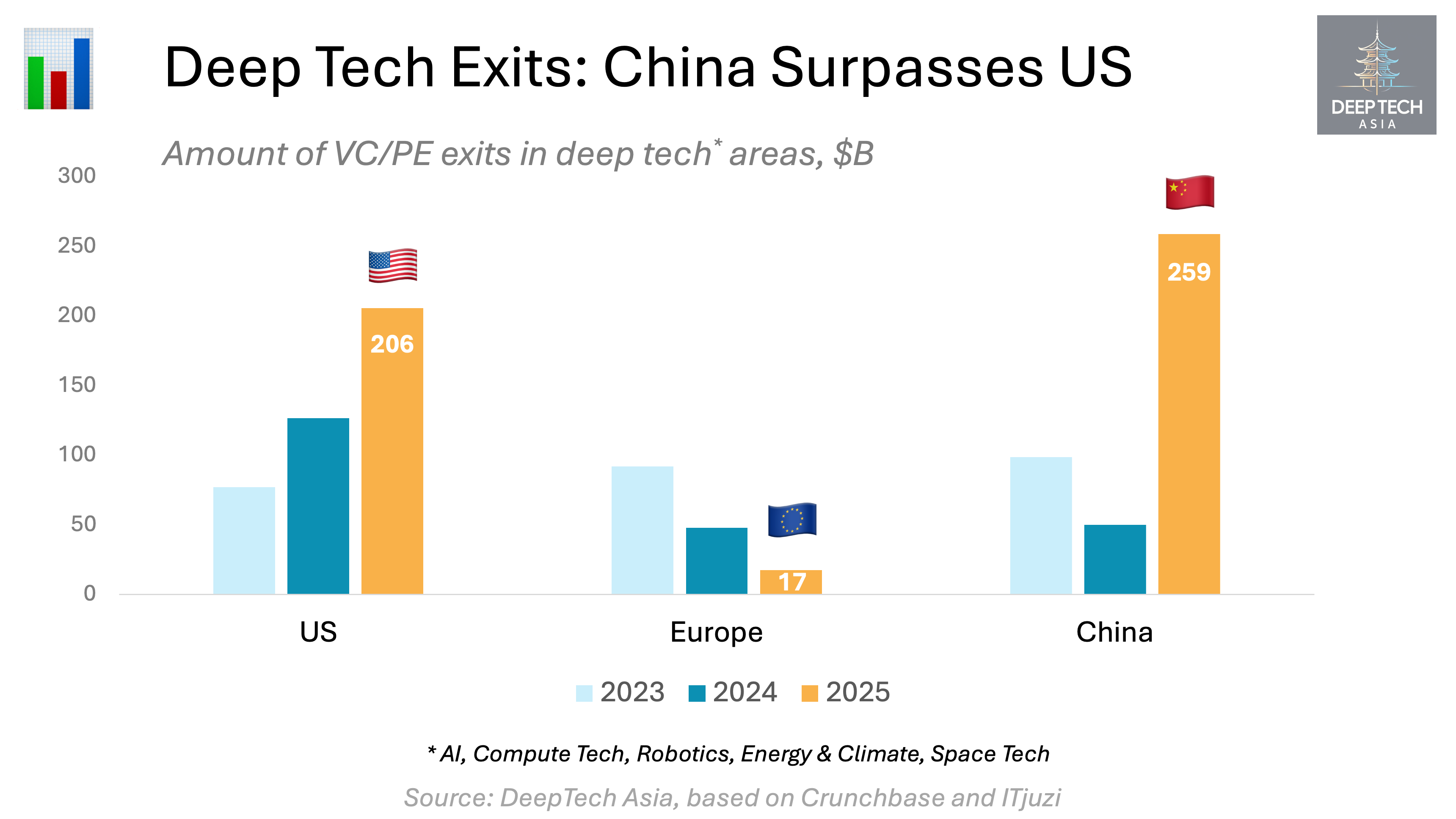 China surpasses US in deep tech exits, tech deal activity is booming: robotics, AI, semiconductors; global investors still cautious. India emerging in energy & space
