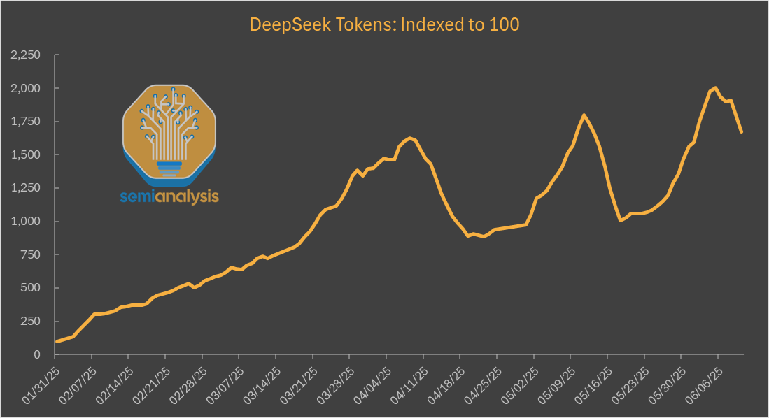 The growing adoption of DeepSeek among B2B users is also reflected in the rising token consumption on third-party hosting platforms.