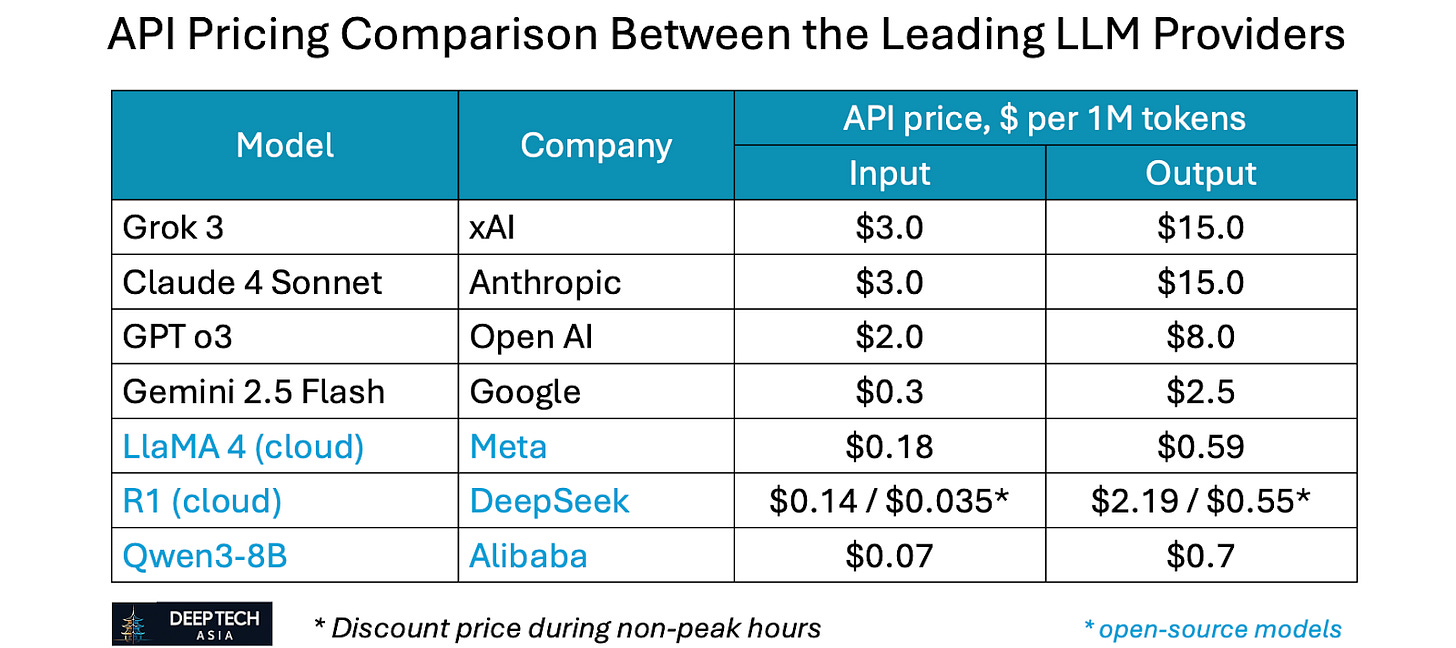 Even after these reductions, the leading global LLM providers still charge 14–15x more than DeepSeek for its APIs (see table below).