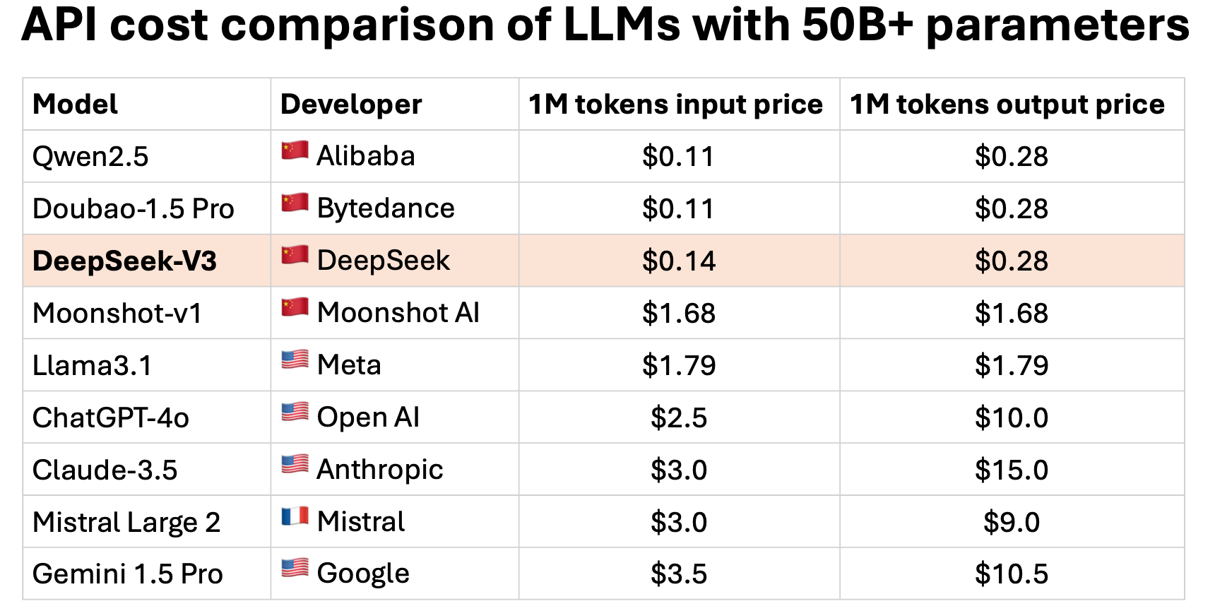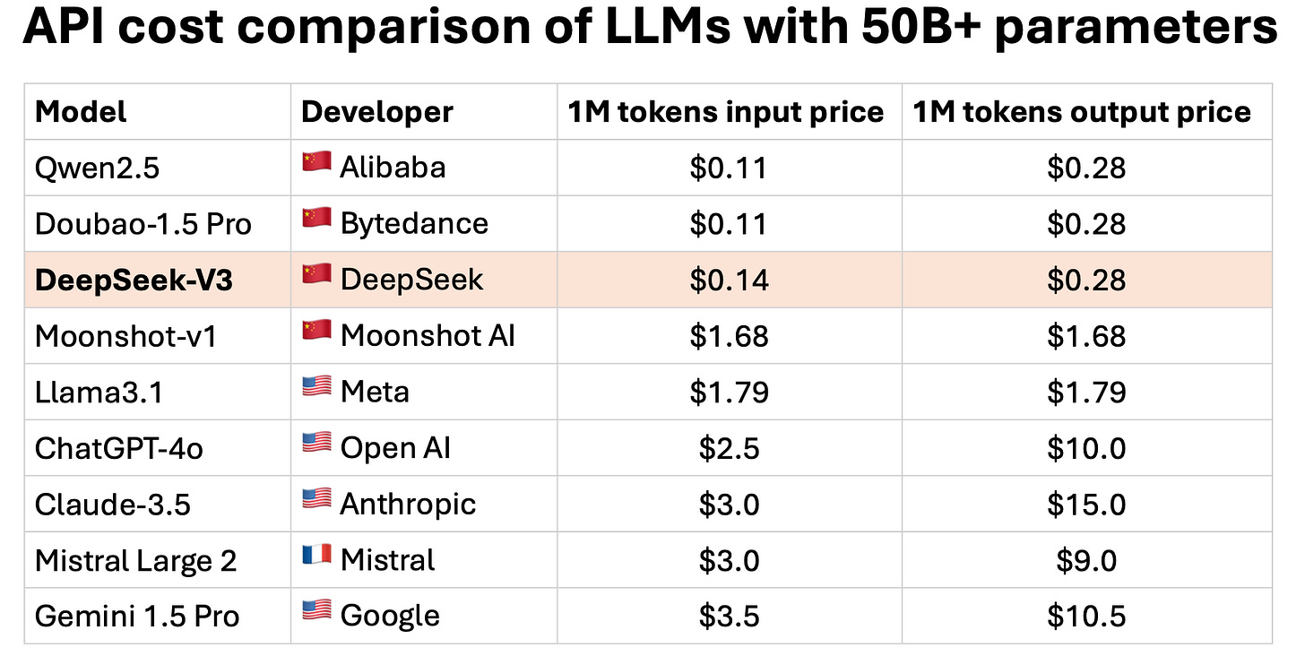 While DeepSeek-V3 APIs are 18x cheaper than ChatGPT-4o and other Western AI models, their pricing is almost the same as for their Chinese AI developers. It means that now there will be a pricing war between LLMs globally, but first of all, in China.